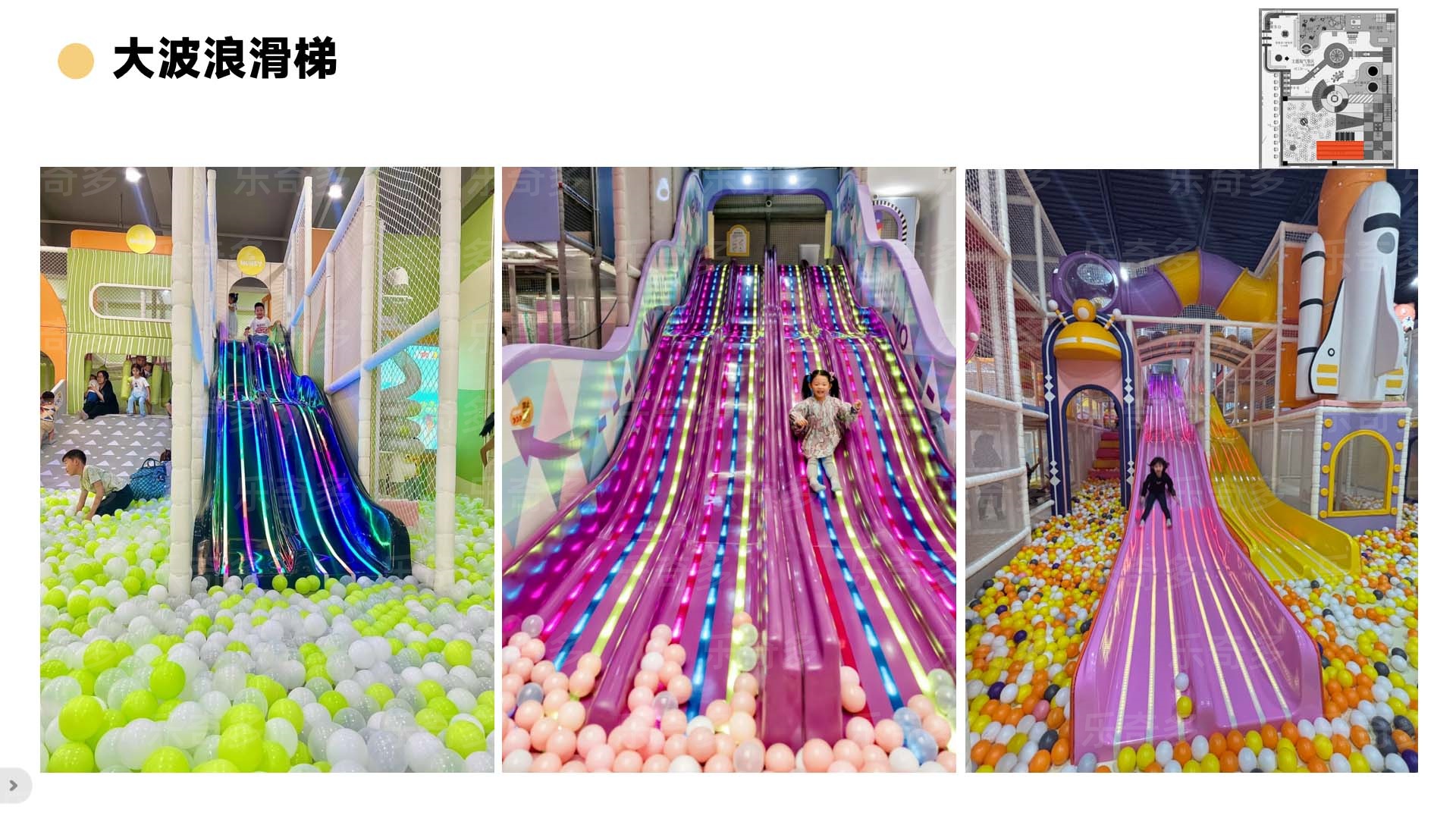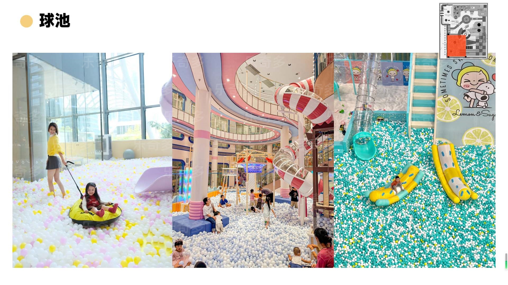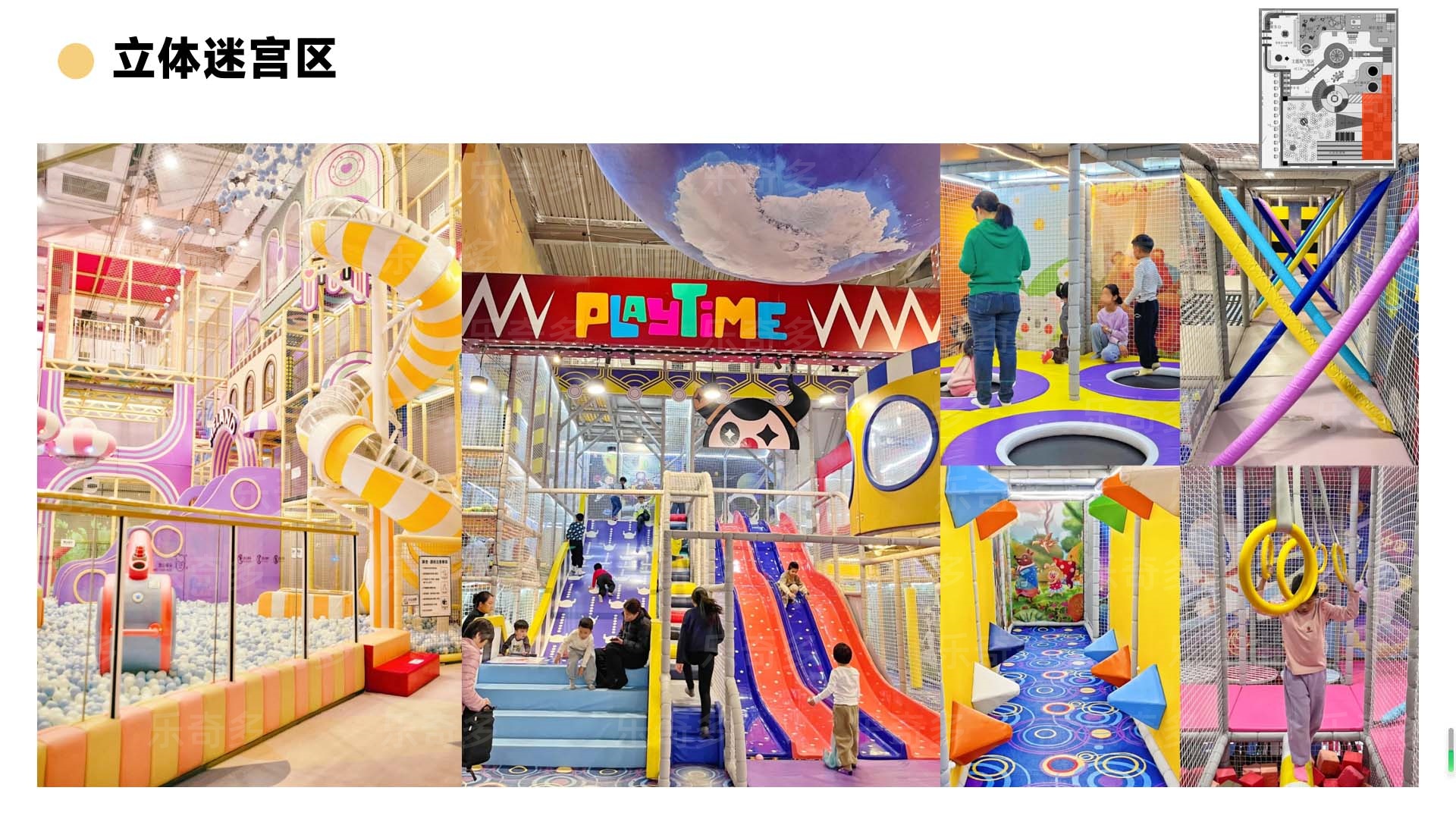 項目玩法:沙池探寶,海洋球池,波浪滑梯,互動投影,組合滑梯,手工區(qū),彈跳迷宮、兒童小蹦床,角色扮演,公主屋,親子餐廳等。